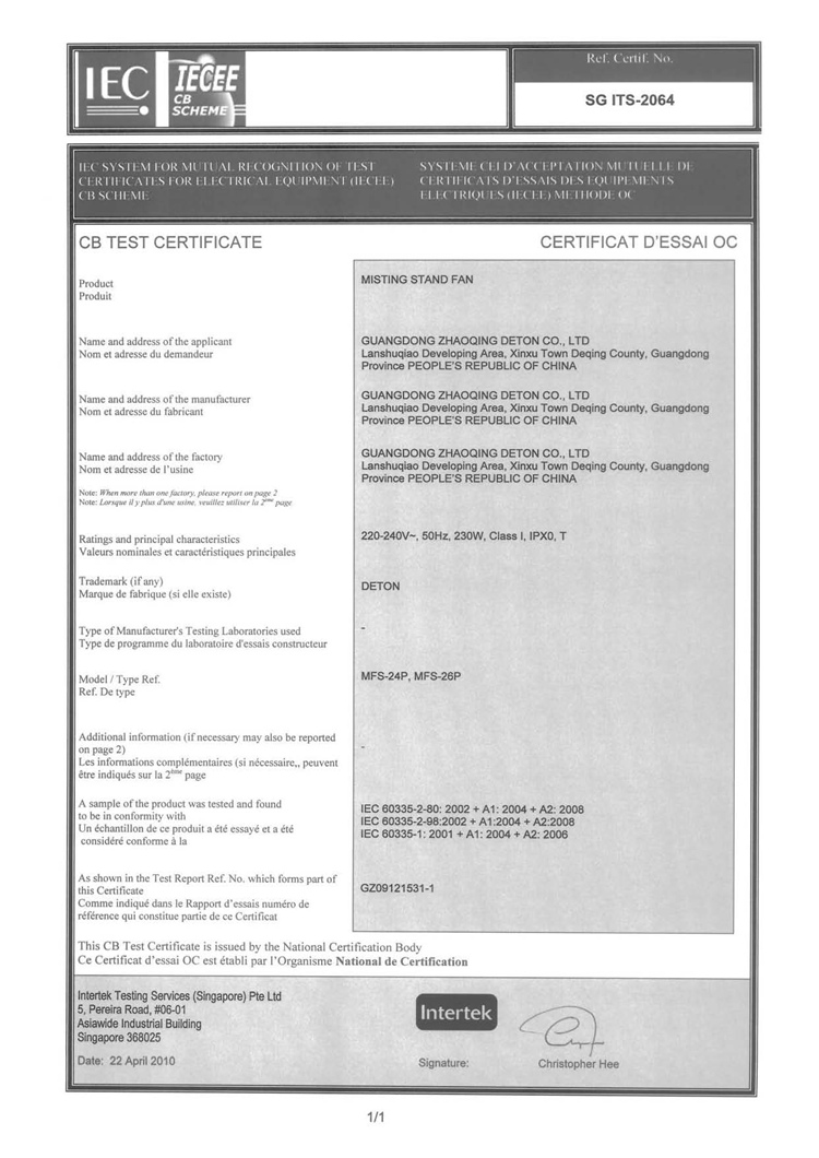 P系列霧化風(fēng)扇CB認(rèn)證