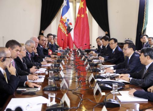 5. 在中國國務院總理李克強與智利總統(tǒng)巴切萊特的見證下,中國商務部部長高虎城與智利外交部部長穆尼奧斯在智利首都圣地亞哥共同簽署《中華人民共和國商務部和智利共和國外交部關于中國—智利自由貿(mào)易協(xié)定升級的諒解備忘...