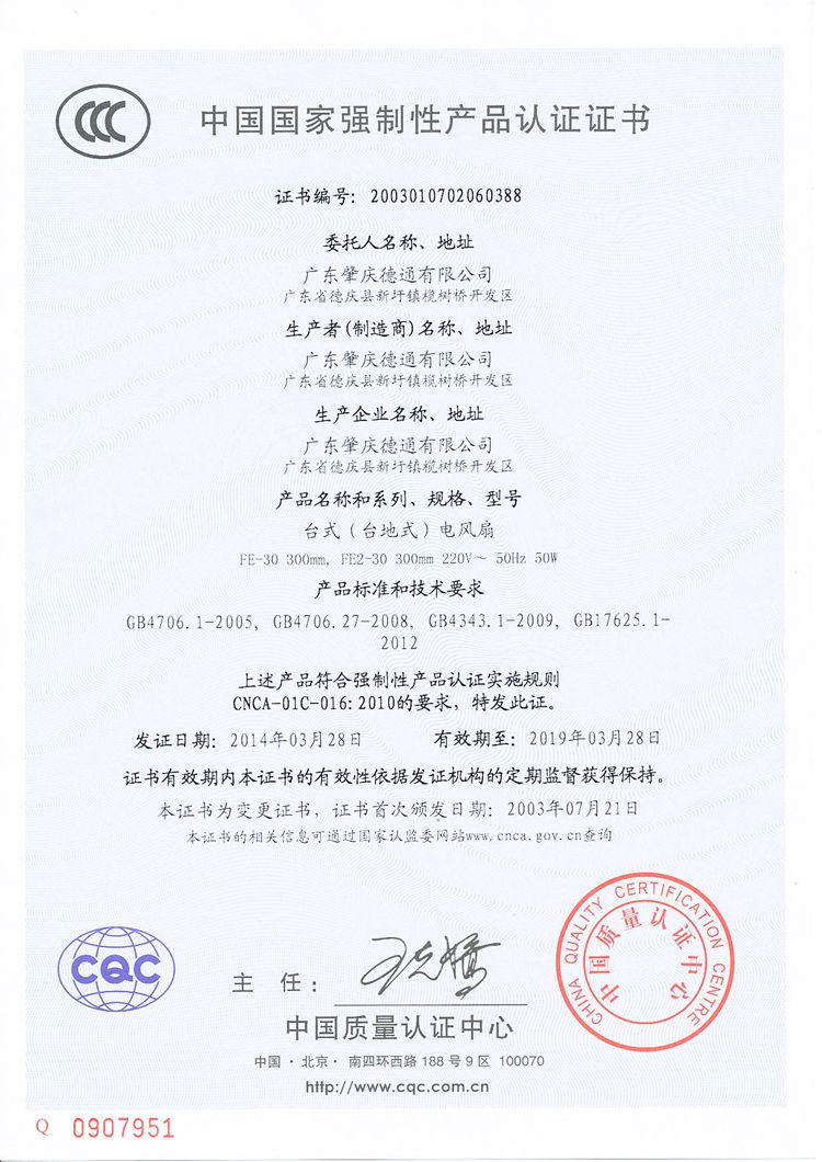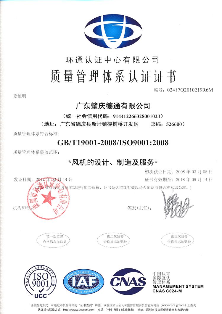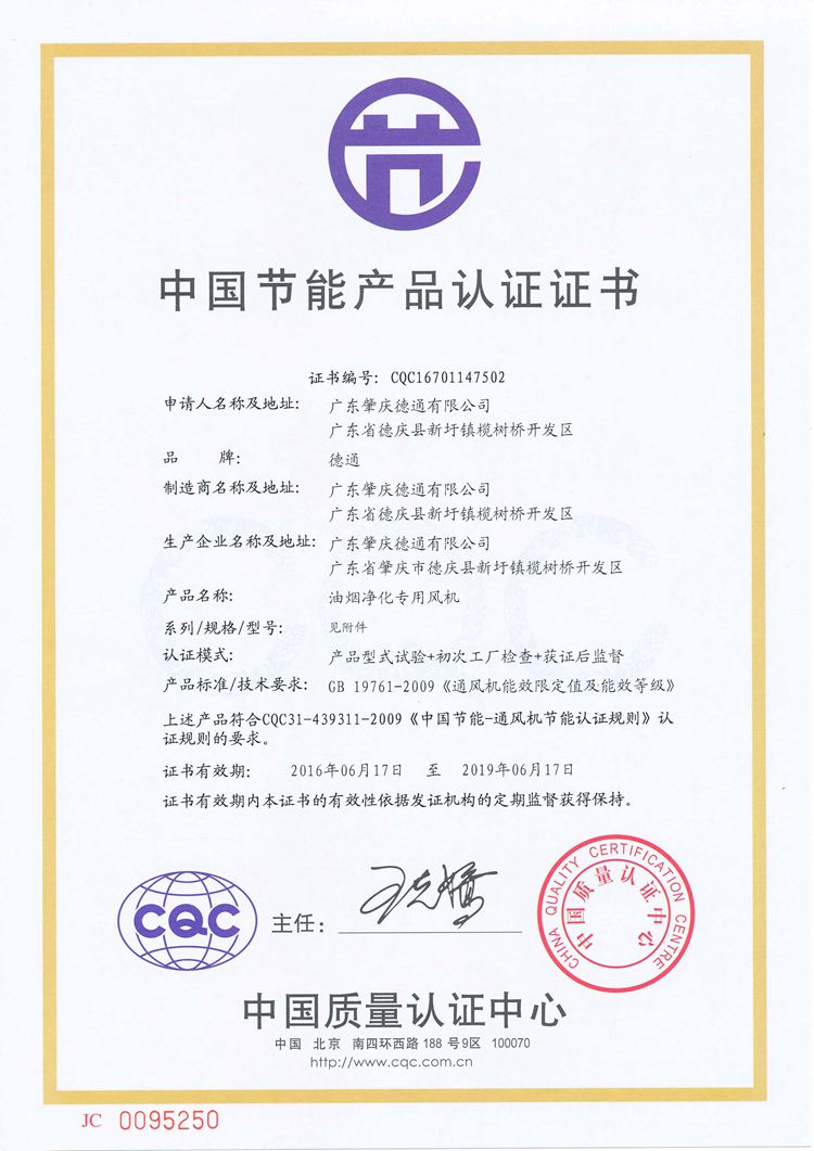 德通在環(huán)保事業(yè)的大潮中毅然走在前列,環(huán)保、高效節(jié)能的風機風扇產品應運而生,多系列產品達到一級能效,獲CQC認證。