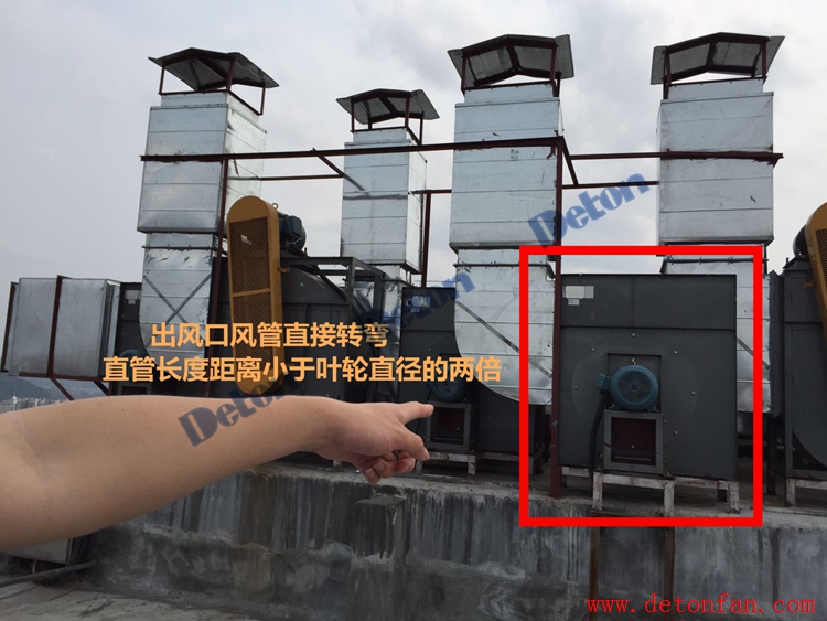 彎頭與出風(fēng)口無(wú)直管過(guò)度,導(dǎo)致風(fēng)機(jī)噪音大