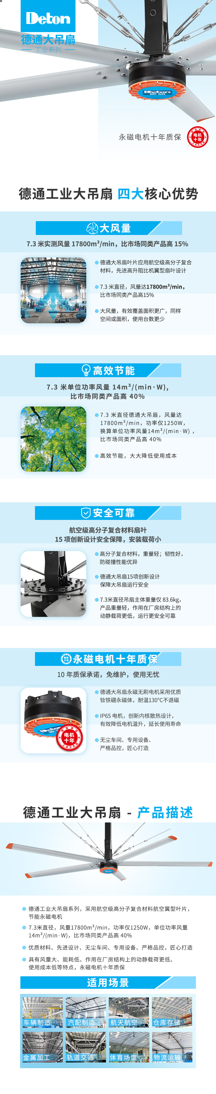 【高效節(jié)能】:7.3米單位功率風(fēng)量14m3/(min·W),比市場(chǎng)同類產(chǎn)品高40%