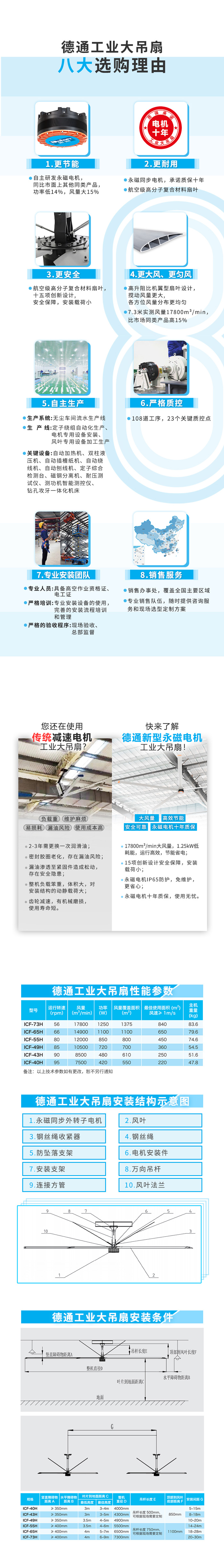 【高效節(jié)能】:7.3米單位功率風(fēng)量14m3/(min·W),比市場(chǎng)同類產(chǎn)品高40%